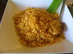 ![]() Aligue fried rice with its distinctive orange-yellow color | |