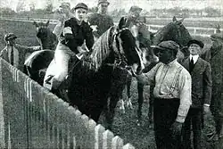 All for Peggy is a 1915 American silent drama short film directed by Joe De Grasse, written by his wife Ida May Park and featuring Lon Chaney and Pauline Bush. The film is now considered to be lost.[1] Lon Chaney had a very small role in the film. A still exists showing Lon Chaney in the role of Seth, the stable groom.[2]