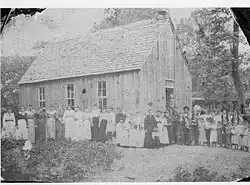 The town was founded in 1883[5] by a group of white settlers who had arrived in Choctaw Nation, Indian Territory in 1882 from Gainesville, Texas, led by Confederate Army veteran Doctor John Trigg Gilmore, his wife, Elizabeth Louise Oliveaux, their children, and relatives William and George McCall, with their respective families. They first settled in Cold Springs, northwest of the present town site, where other settlers soon joined them. The first log cabin was built in Allen in 1883, and this building was used as both a school and church. The town was named after the son of deputy United States marshal William McCall.[6]