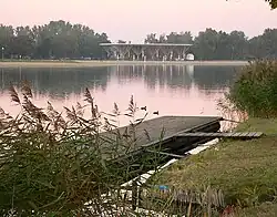 Work on the Allerpark began in 1969 after the respective decisions were taken by Wolfsburg City Council.[3] The river Aller was diverted in order to create the Allersee lake.[4] The aim of the project was for the Allerpark to not only fulfil a cultural purpose, but also play a symbolic role for the city and the surrounding region.[5] A multitude of clubs and associations have been based by the Aller or Allersee since the 1950s and 1960s, for example Wolfsburg's canoeing, rowing and yacht clubs.[6] In 1975, the city initially had to postpone further work on the Allerpark due to reductions in revenue from taxes paid by Volkswagen.[7] Nevertheless, it was able to open the BadeLand Wolfsburg indoor swimming pool and water park complex just two years later. This was then joined by an ice rink now known as the Eis Arena Wolfsburg.[8] The Allersee was made deeper again in 1987. It is currently 1230 metres long and 270 metres wide and contains nearly one million cubic metres of water.[9]