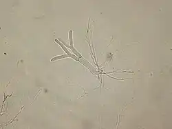 Allomyces is a genus of fungi in the family Blastocladiaceae. It was circumscribed by British mycologist Edwin John Butler in 1911. Species in the genus have a polycentric thallus and reproduce sexually or asexually by zoospores that have a whiplash-like flagella. They are mostly isolated from soils in tropical countries, commonly in ponds, rice fields, and slow-moving rivers.[2]