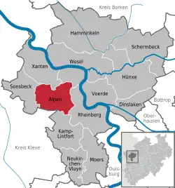 Alpen is a municipality in the district of Wesel, North Rhine-Westphalia, Germany.