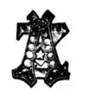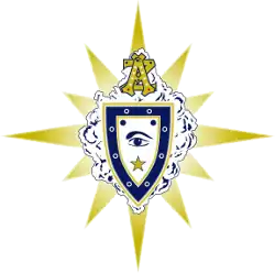 The fraternity's badge is a monogram of the letter Α on top of the letter Ζ, with a small star at the center of the Α.[6][2] Its key is the shape of two overlapping circles in gold and black.[6][2] Its colors are old gold (mode) and sky blue.[6][2] Its flower is the pink carnation.[10]