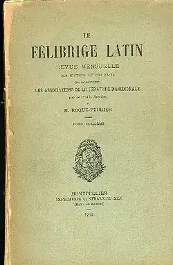 - ^ Berjoan, Nicolas (2011). "L'idée latine du Félibrige : Enjeux, boires et déboires d'une politique étrangère régionaliste (1870-1890)". Revue d'histoire du XIXe siècle (42): 121–136. doi:10.4000/rh19.4110. Retrieved December 11, 2015.