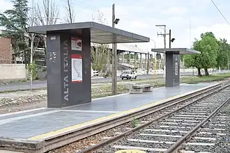 Alta Italia is a light rail station located on the intersection of Alta Italia and Hipólito Yrigoyen Streets in the town of General Gutiérrez, Maipú Department, Mendoza Province, Argentina. The station opened on 28 February 2012, as part of Metrotranvía Mendoza.