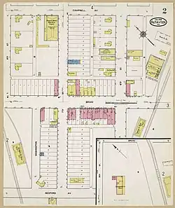 Between July 1908 and May 1909, the town of Lane's Siding, which (after a hat toss in one of the company bungalows[5]) was renamed to Altavista after the Lane family farm near Charlottesville,[7] had grown rapidly, with a "$100,000 machine shop, a $20,000 foundry and iron working plant, a $15,000 wood working plant, a $15,000 brick and tile making plant, a banking building and the home office of a $2,000,000 contracting and railway building company, a half dozen stores, a water works plant, an electrict lighting plant, a $30,000 hotel nearing completion, and about fifty residences" all being built in under a year.[9]