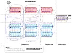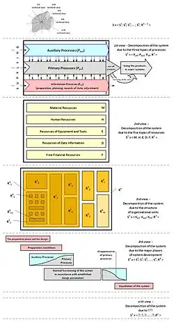 - The first sectional view considers the system as the structure of all processes occurring within the system: S1 = ⟨Ppri; Paux; Pinf; R1⟩.