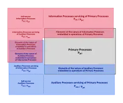 In any ergo-transformational system, the occurrence of a set of primary (Ppri), auxiliary (Paux) and information processes (Pinf) is mandatory. Depending on the nature of the materials, their processing is grouped with a method for information processing. Figure 5 refers to the mutual relationships between Ppri, Paux and Pinf in the ergo-transformational system.
