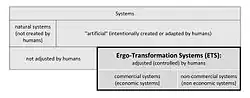 In the classification of systems, the position of ergo-transformational systems is shown in Table 1. This classification is based on the degree of human intervention (involvement) in the system.