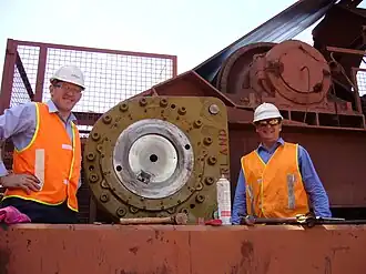 A Marland Clutch installed at the coal loading facility in Port Hedland, WA, Australia, together with two employees from Altra's sales and support office in Castle Hill, NSW.