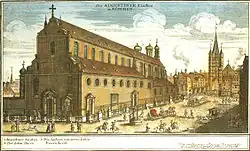 A first subdivision of the city was in 1271 by the division of the parish of St. Peter along the east–west axis of the city (the salt road) and the promotion of the Frauenkirche as the second parish church.[10] Although this was primarily a church subdivision, it was also used in secular documents to designate the northern and southern halves of the city, and even the outside of the city, as St. Mariae and St. Peter.