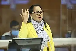 In September 2022 the murder and presumed femicide of the lawyer María Belén Bernal gained international importance and the case was debated in the assembly[6] and mentioned in the United Nations.[7] Femicide in Ecuador is a problem and a specific offence which some believe is underreported in Ecuador.[8] A five woman team proposed by Pamela Aguirre was appointed to oversee the investigation after the main suspect, a police officer, had fled. The team members were Ana Cecilia Herrera, Mireya Pazmiño, Marjorie Chávez, Yeseña Guamaní and Amada Ortiz who was still an independent member.[9]