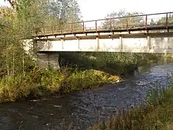 The Amata is a river in Gauja National Park in the Middle Latvian Lowland. It flows 66 km (41 mi) from lake Kukala in Vidzeme to the river Gauja. The riverbanks feature Devonian red sandstone cliffs , and rapids. The River Amata is one of Latvia's fastest rivers and has one of the deepest valleys of the rivers in Vidzeme, with up to 45 m (148 ft) high sandstone and dolomite bedrock banks.