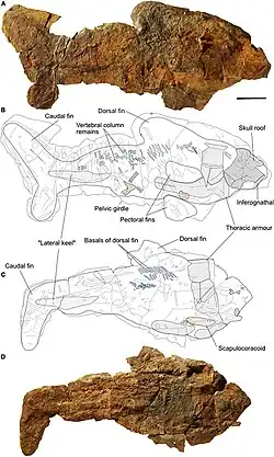 - ^ a b c d e Jobbins, Melina; Rücklin, Martin; Ferrón, Humberto G.; Klug, Christian (2022). "A new selenosteid placoderm from the Late Devonian of the eastern Anti-Atlas (Morocco) with preserved body outline and its ecomorphology". Frontiers in Ecology and Evolution. 10. Bibcode:2022FrEEv..1069158J. doi:10.3389/fevo.2022.969158. hdl:10550/85583. ISSN 2296-701X.