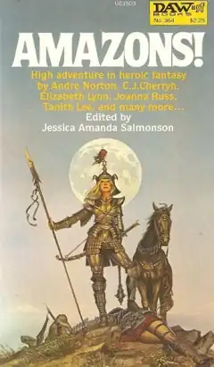 Amazons! is an anthology of fantasy stories, edited by Jessica Amanda Salmonson, with a cover and frontispiece by Michael Whelan. It was first published in paperback by DAW Books in December 1979, and was the first significant fantasy anthology of works featuring female protagonists by (mostly) female authors.[1] It received the 1980 World Fantasy Award for Best Anthology.[1] A follow-up anthology, Amazons II, was released in 1982. The story "Agbewe's Sword" by Charles R. Saunders was adapted into the 1986 film Amazons.[2]