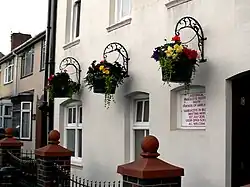 The parish church of Holy Trinity was begun in 1841, and the church completed in 1842 and consecrated in 1844, being made a separate ecclesiastical parish (a perpetual curacy) in 1845 and then a vicarage in 1868.[8] Amblecote Parish Church of the Holy Trinity is almost unique (as is nearby Quarry Bank Church) because it is constructed completely of yellow fire bricks, made by local brickworks (William King and Co) from the local fire clay which, together with thick coal seams, forms the main strata of Amblecote in the east, whilst the new red sandstone underlies Amblecote to the west of the railway line. Local benefactors, such as the Foster Rasterick Ironworks, supplied the iron railings around the perimeter of the church and Amblecote was one of few to retain these railings following World War II when many churches did not keep them.