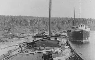 The Amboy (Official number 95276)[5] was a wooden schooner barge that was constructed specifically for the Minnesota's iron ore trade. She was built in 1874 by Quayle & Murphy of Cleveland, Ohio.[5] She was 209.3 feet (63.8 m) in length, her beam was 34.2 feet (10.4 m) and her cargo hold was 14.4 feet (4.4 m). She had a gross tonnage of 893 tons, and a net tonnage of 849 tons. She could carry approximately 1,500 tons of cargo.[6] She was originally named Helena.[7] In July 1891 the Helena sank in a collision in the Little Mud Lake, St. Marys River with the loss of one life.[8]