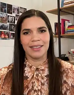 Ferrera has been active, through her involvement with the organization Voto Latino and by appearing on various news programs, in getting Latinos in the United States to vote.[49] Ferrera also works with Eva Longoria to co-host She Se Puede, a digital lifestyle platform which encourages voting within the Latina community. As a continuation of their work prior to the 2020 presidential campaign, Ferrera and Longoria held a textbanking event with VoteRiders to educate voters about Georgia's strict Voter ID laws ahead of the Georgia Senate runoff.[50][51]
