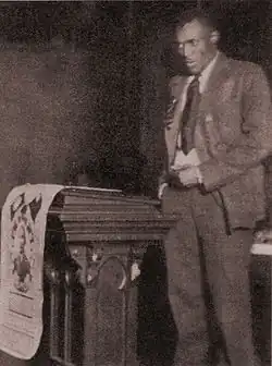 The founding convention of the American Negro Labor Congress opened on the evening of Sunday, October 25, 1925, with a mass meeting which heard the reports of national organizer Fort-Whitman and national secretary H.V. Williams.[14] Fort-Whitman's keynote speech declared that the new organization was established "to gather, to mobilize, and to coordinate into a fighting machine the most enlightened and militant and class-conscious workers of the race" in support of concrete objectives.[15]