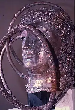 Since the start, almost annually, Gulgee has revisited self-portraiture in his metalwork, specifically involving masks of his face. Each of these encapsulate the state of the artist at that time. Hands also appear, representing the human capacity for both creation and destruction. For Gulgee, they are his imagined hands, tying into the concept of begreifen explained to him early in his career by German intellectual Annemarie Schimmel, as "learning through touch".[3]