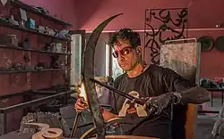 ![]() Gulgee in his metal workshop, Karachi, 2018. | |