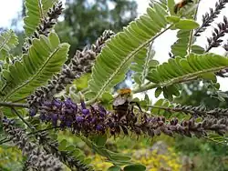 Amorpha nana (dwarf indigo, dwarf indigobush,[3] dwarf false indigo, fragrant indigo-bush, fragrant false indigo, dwarf wild indigo) is a 1–3-foot (30–91 cm) tall perennial shrub in the Pea family (Fabaceae) which is native to North America. It has vibrant green pinnate leaves and clusters of purple flowers. The fruits are small pods. Dwarf false indigo grows in dry prairies and rocky hillsides. Amorpha nana likes rocky and sandy soil.[4][5]