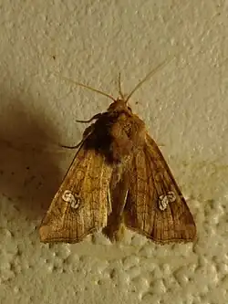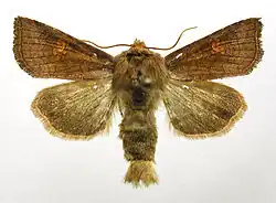 - ^ Goater, Barry (1983). Heath, John; Emmet, A Maitland (eds.). Amphipyrinae. In The Moths and Butterflies of Great Britain and Ireland. Volume 10. Colchester: Harley Books. pp. 237–8. ISBN 0-946589-01-1.