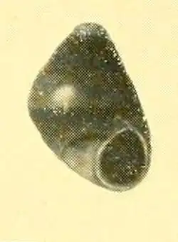 Aperture and operculum: The conformation of the aperture is characteristically Amphithalmid; that is, the aperture, which is oval, is much contracted by a shelf extending out from the columellar and parietal wall toward the outer lip, thus contracting the aperture. This shelf forms a decided pit behind its edge. The inner and parietal lip of the aperture, therefore, are not in contact with the columellar or parietal wall, but are at some distance from it. The posterior portion of the outer lip, however, extends upward to the preceding turn, which it joins immediately below the peripheral keel, as in mollusks with a normal aperture. The operculum is thin and paucispiral.[3]