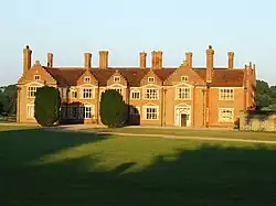 The Hall was destroyed by fire on 3 January 1885[2] and re-built in 1892 by Eustace Balfour and Hugh Thackeray Turner of London.[3][4] It has gardens designed by Capability Brown and a lake.[5]