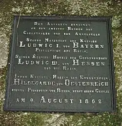The leisure park in the Amseldell was created in the 19th century under Lord (Freiherr) Carl von Gienanth (1818–1890), whose family managed an ironworks in Trippstadt and, from 1833, also owned Trippstadt House. Its aim was to enhance the walk through the Karlstal valley, which had already been landscaped in the 1780s by garden architect, Friedrich Ludwig Sckell.[3] In 1890, after the death of Carl von Gienanth, his estate in Karlstal and Amseldell was donated to the Trippstadt tourist association, who looked after both sites until the 1930s.[2] In May 1914, the Amseldell site was the venue for a regional gymnastics festival in which about 250 gymnasts took part.