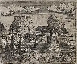 The battery was built with the help of the French vice-admiral Pierre André de Suffren (1726–1788) and the architect Louis Michel Thibault from 1781 to 1787. The wall was 17.5 m high with arrowslits and could withstand heavy enemy fire. Canons lay on the top floor. Ammunition and cannonballs were stored in the basement and in the gunpowder magazine behind the battery. The main guns were 12.5 m above sea level. Two hundred soldiers could be housed in the front barracks. However, military operations never needed to be launched from the fortress. When the artillery were first tested, however, two soldiers died and Gov. Cornelis Jacob van de Graaff was wounded. In 1827, the weaponry was removed, and the building was used from then on as a prison.