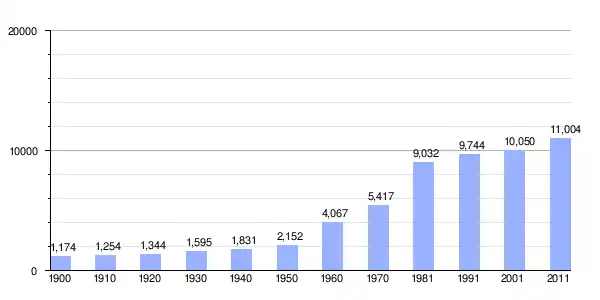 From the 1980s onwards, due to the economic recession, population stabilized. In 2008, nevertheless, the town recovered and reached again to 10,000 inhabitants.