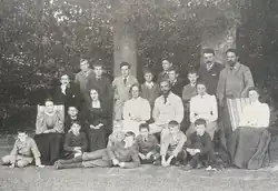 Bedales opened in Lindfield, near Haywards Heath, in January 1893.[1] Girls first joined the school in the Autumn of 1898, due in no small part to "the determination and persistence of Mrs Badley", whose promotion of women's suffrage in the area was well known.[11] This made Bedales the first English boarding school which admitted boys and girls on a fully equal basis.[1][9] The decision was not without controversy, but John Haden Badley defended the decision as encouraging better relationships between the sexes into adulthood.[1] Amy Badley was known by students of the school as 'Ma B'.[11][8]