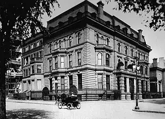 As part of the purchase of the "Stone" property in 1880, Barber reserved the best piece of the property for his own use, and in 1886, commissioned architect Theophilus P. Chandler to design an imposing châteauesque Queen Anne mansion made of stone. It was located between 13th and 14th Streets and was one of Washington's most impressive mansions. Barber named it Belmont,[20] after his second wife's hometown. In 1913, Belmont was sold by his son to developer Harry Wardman and razed in 1915 to allow for construction of the Clifton Terrace Apartments.[21]