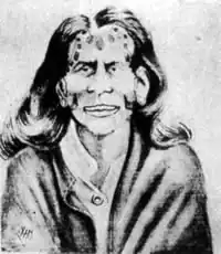 Along with Viriamo, Ana Eva Hei was among the last surviving women from Rapa Nui to receive traditional facial tattoos.[2] Her tattoos were described by Alfred Métraux, who undertook a research expedition to her home from 1934 to 1935. He stated that her tattoos included: "two parallel stripes crossing her forehead from one ear to the other and the inner edge of the ear tattooed ... The design on her lower jaw is composed of a triangular figure which meets an oval design, together forming an open angle. Her hands are covered with thin blue lines reminiscent of mittens."[3] The singer and community leader, Luis Pate Paoa,[4] remembered meeting her when he was a child, recalling that she danced and sang a song about cannibalism.[1]