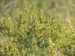 Anabasis aphylla is a species of flowering plant in the family Amaranthaceae, native to the region surrounding the Caspian Sea, Central Asia, and Xinjiang and western Gansu provinces of China.[1] A many-branched shrub usually found growing in alluvial fans and dune swales, it is sometimes planted to catch blowing soil and stabilize sand dunes.[2] The alkaloid anabasine was named for this toxic species, from which it was first isolated by Orechoff and Menschikoff in the year 1931. Anabasine was widely used as an insecticide in the former Soviet Union until 1970.[3]