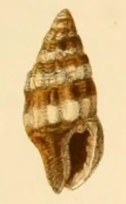(Original description in French) The shell is solid, elongated, and turreted, composed of six convex whorls separated by a well-marked and broadly undulating suture. Two embryonic whorls are smooth, while the others are adorned with strong, prominent longitudinal ribs, numbering 10 on each of the last two whorls. Well-defined decurrent striae are apparent in the intervals between the ribs but fade on their convexity. On the body whorl, the ribs do not extend entirely to the base, which shows only decurrent striae.