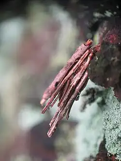 The wingspan is about 15 mm for males. Female are wingless.[2] Adults are on wing in May and June.[3]