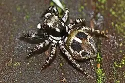 - ^ Zhang, J. X.; Maddison, W. P. (2015). "Genera of euophryine jumping spiders (Araneae: Salticidae), with a combined molecular-morphological phylogeny". Zootaxa. 3938 (1): 15. doi:10.11646/zootaxa.3938.1.1. PMID 25947489.
