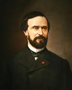 However, during his direction, Hulot's relations with the postal administration had wavered many times. Reluctant as soon as December 1855 to perforate stamps like the British Post Office began, Hulot was forced to adopt it at the end of 1861, with stamp issue in 1862.[4] Worse, after Jacques-Jean Barre died in 1855, he didn't succeed to work with his son and new general engraver, Désiré-Albert and they end their association in August 1866.[5] But their conflict continued next Autumn until the Commission of Mint and Medals decided that Barre son had to re-engrave a laurel-crowned Napoleon III hallmark.[6] Hulot created new stamps including the 5 franc stamp, the first large postage stamp of France, by putting together older material from Barre father and son until the 1870s.