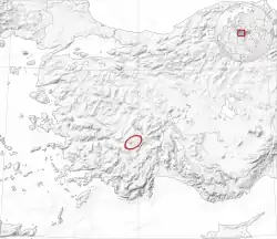 Aphanius transgrediens is endemic to Lake Acigöl, Turkey, a lake sourced from sulfurous springs (on the south-eastern margins of the lake itself), and containing sodium sulphate and other salts whose harvest is a significant economic activity in the region. Due to severe fluctuations in water levels and chemical composition, this species is mostly restricted to the margins of the lake in spring fields of varying salinity. These ponds are typically very shallow and occupied by growths of filamentous algae of the genus Chara. Winter rainfall allows migration between sites through rivulets around the periphery of the lake, causing a greater genetic diversity within populations, which extend across 1 km2 (0.39 sq mi). This minor migration occurs in late summer, and in the opposite direction in early summer. It is most likely omnivorous, feeding upon aquatic invertebrates and plants. Females are batch-spawners, producing 5-11 eggs per batch on vegetation in a site defended by males. Eggs are 1.3-1.5 mm in diameter, and are laid from early spring to late autumn.[2][3]