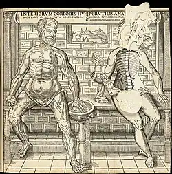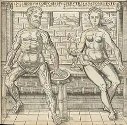 Anatomical fugitive sheets are illustrations of the human body specially created to display internal organs and structures. Hinged flaps enable the viewer to see a body as if in various stages of dissection. They appeared for the first time in the 16th century and became popular as instructional aids. The parts were labelled, making it easier for lay students to understand the workings of the human body.[1][2]