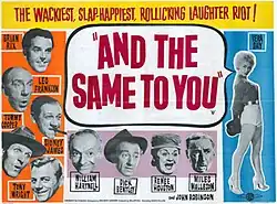And the Same to You is a 1960 British boxing-themed comedy film directed by George Pollock and starring Brian Rix and William Hartnell.[1][2] It was written by John Paddy Carstairs, John Junkin and Terry Nation based on the 1955 stage farce The Chigwell Chicken by A.P. Dearsley.