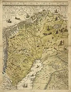 - ^ Its full Latin title is Lapponise, Bothniae Cajaniseque regni Suecie provinciarum septentrionalium nova delineatio sculpta anno domini 1611.[1] An approximate English translation is: "A new outline of Lapland, Bothnia [i.e., Ostrobothnia, West Bothnia and North Bothnia] and Kainuu, the northern provinces of the kingdom of Sweden, engraved in the year of our Lord 1611."
