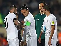 On 18 May 2014, Teymourian captained Iran in the match against Belarus, making him the first Christian to captain the Iranian national team.[2][3] On 1 June 2014, he was called into Iran's 2014 FIFA World Cup squad by Carlos Queiroz.[27] He played the full 90 minutes in all three group stage matches, becoming the most capped Iran player at the World Cup with six matches alongside Mehdi Mahdavikia. He was called into Iran's 2015 AFC Asian Cup squad on 30 December 2014 by Carlos Queiroz.[28] He provided three assists in the tournament.