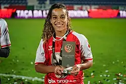 In 2015, Norton was offered a contract with FC Barcelona.[4][5] In one of the final matches of the season, against Club de Albergaria, she suffered a serious injury in her left knee, which forced her to undergo surgery twice. As the contract with Barcelona was already signed, she went to Catalonia but was unable to play any matches for the club. After one year in Spain, she decided to return to Portugal and signed with S.C. Braga in order to get more playing time and therefore recover her previous form.[2][6] On 19 March 2018 Norton was included by the "Quinas de Ouro" award among the "11 Best Players" in the Portuguese women's league. The award is annually organized by the Portuguese Football Federation together with the "Associação Nacional dos Treinadores de Futebol" and the "Sindicato dos Jogadores Profissionais de Futebol".[7][8]