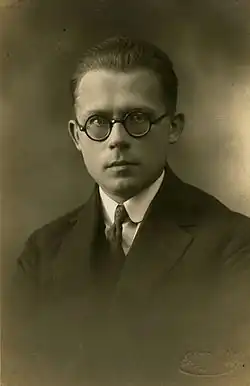 Andrus Kustas Saareste was the son of the merchant[3] Kustas Saareste (né Saberg, 1860–1929) and his wife Alma Julie Saberg (née Schneider, 1872–?). He graduated from Tallinn Alexander High School in 1912, then studied at the University of Tartu from 1912 to 1913 and at the University of Helsinki from 1913 to 1917, and from 1919 back at the University of Tartu, graduating in 1921 with a master's degree in Estonian.[3][4] In 1924, he defended his doctoral dissertation on Estonian dialects (Leksikaalseist vahekordadest eesti murretes, I. Analüüs 'On Lexical Relations in Estonian Dialects, I. Analysis'), published in the same year in the series Acta et Commentationes Universitatis Dorpatensis (B VI.1).[5]