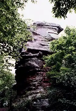 Anebos Castle is a ruin of a medieval castle in the Palatinate Forest south of Anweiler in Rhineland-Palatinate, Germany. The name of the castle is probably derived from the German word "Amboss" (anvil).