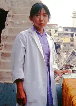In August 1982, Ang responded to an appeal for medical personnel from Christian Aid to treat war casualties in Lebanon and went to work at the Gaza Hospital near the Sabra and Shatila refugee camp in Beirut.[4][5] The following month, she became witness to the Sabra-Shatila massacre during the Israeli invasion of Lebanon in 1982.[6] She and two other hospital staff testified to Israeli Kahan Commission on the Sabra and Shatila massacre in September 1982.[7] Ang would also testify to the massacre in front of the Kuala Lumpur War Crimes Commission in 2013, during a hearing that eventually found the State of Israel guilty of genocide.[8]