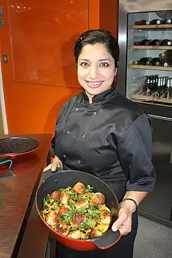 Angela Malik, (born 3 December 1971) is an Indian and Scottish chef, entrepreneur and food consultant.[1] A businesswoman who built a deli business (now defunct) and multi-site Asian cookery school, The Angela Malik School of Food and Wine, Malik originally trained at Leiths School of Food and Wine[2] and gained chef experience at London restaurants Bibendum and Vong.[3]